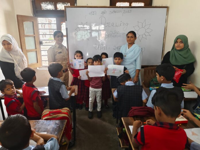 प्रतियोगिता में स्कूल के विद्यार्थियों ने उत्साहपूर्वक भाग लिया एवं “नशे से दूरी है जरूरी” तथा “नशे के दुष्परिणाम” विषय पर प्रभावशाली चित्र प्रस्तुत किए। उल्लेखनीय है कि इस अवसर पर थाना खाराकुआ पुलिस स्टाफ के सदस्यों द्वारा भी विद्यार्थियों के साथ बैठकर चित्र बनाए गए, जिससे बच्चों में उत्साह और आत्मीयता का संचार हुआ।
