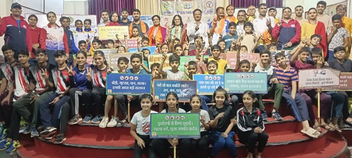 इस अवसर पर डॉ. वंदना गुप्ता, प्राचार्य द्वारा अभियान अन्तर्गत संबोधित करते हुए बताया कि आज के इस वर्तमान परिप्रेक्ष्य में नव युवतियां एवं महिलाएँ भी मादक पदार्थों की ओर आकर्षित हो रही है। इस ओर भी उन्होने ध्यान आकर्षित किया। साथ ही खिलाडियों को भी इस बात की शपथ दिलाई गई कि हम देश के श्रेष्ठ खिलाडी बनने के लिये कभी भी किसी भी प्रकार का नशा नहीं करेंगे।
