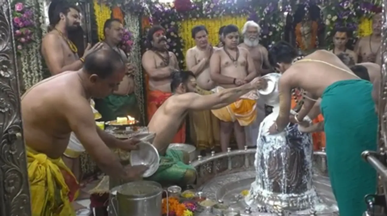 भगवान महाकाल का पंचाभिषेक, श्रृंगार और भस्म आरती का भव्य आयोजन किया गया, जिसमें भगवान ने मन महेश स्वरूप में भक्तों को दर्शन दिए। पंडित अमर पुजारी ने कहा कि रक्षाबंधन का महापर्व है। मंत्रोच्चारण के साथ भस्म चढ़ाई गई, श्रंगार पूजन किया गया और फिर विधिवत रूप से आरती की गई। यहां भगवान महाकालेश्वर को राखी बांधी गई।