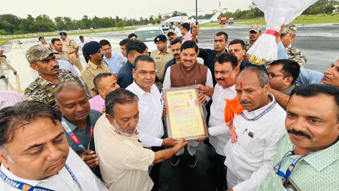 उज्जैन, । मुख्यमंत्री डॉ मोहन यादव का उज्जैन हेलीपैड आगमन पर जनप्रतिनिधि विधायक श्री अनिल जैन कालूहेड़ा, महापौर श्री मुकेश टटवाल,श्री संजय अग्रवाल, श्री रवि सोलंकी और मीडिया प्रतिनिधि श्री विशाल हाड़ा,श्री गणपत चौहान,श्री भूपेंद्र भूतड़ा,श्री रवि सेन और अन्य मीडिया प्रतिनिधियों एवं गणमान्य नागरिकों द्वारा पुष्पगुच्छ भेंट कर आत्मीय स्वागत किया गया।