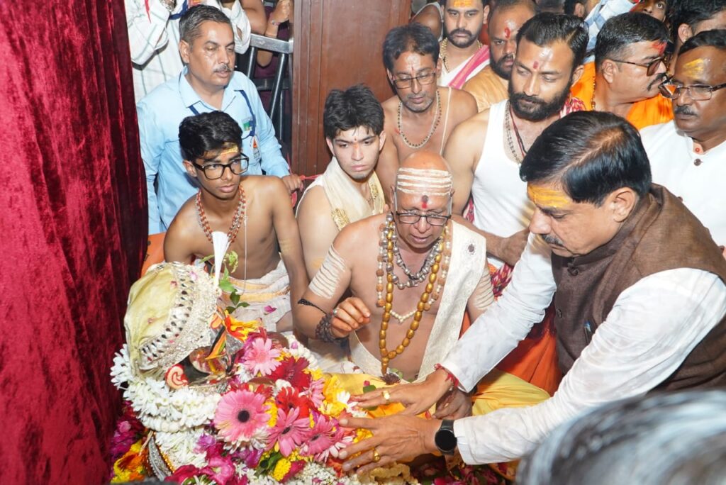 सवारी निकलने के पूर्व श्री महाकालेश्वर मंदिर के सभा मंडप में भगवान श्री चन्द्रमौलेश्वर का पूजन-अर्चन विधिवत रूप से मुख्यमंत्री डॉ यादव, प्रभारी मंत्री श्री गौतम टेटवाल ने किया। सभा मंडप में विधायक श्री अनिल जैन कालूहेड़ा,विधायक श्री सतीश मालवीय , विधायक श्री महेश परमार, महापौर श्री मुकेश टटवाल, सभापति श्रीमती कलावती यादव, श्री वैभव यादव ने भी भगवान चंद्रमौलेश्वर का पूजन किया और आरती में सम्मिलित हुए। पूजन के बाद निर्धारित समय पर भगवान श्री महाकाल की पालकी को नगर भ्रमण के लिये रवाना किया गया। पूजन-अर्चन पुजारी पं.महेश शर्मा व अन्य पुजारियों द्वारा सम्पन्न करवाया गया। इस अवसर पर सभा मंडप में पूजन-अर्चन के दौरान श्री संजय अग्रवाल, श्री रवि सोलंकी आदि उपस्थित थे।