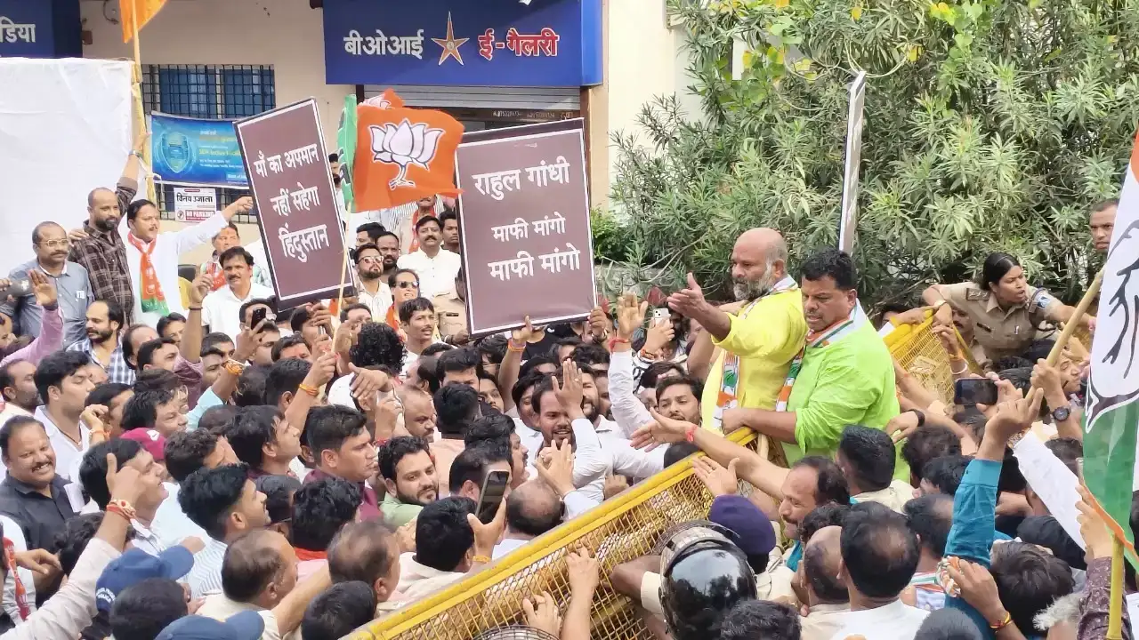 उज्जैन, । उज्जैन में प्रधानमंत्री नरेन्द्र मोदी की स्वर्गीय माताजी पर अभद्र टिप्पणी का विरोध करते हुए सोमवार को भारतीय जनता पार्टी द्वारा कांग्रेस कार्यालय का घेराव किया गया। भाजपा के इस हल्ला बोल प्रदर्शन में बड़ी संख्या में पदाधिकारी और कार्यकर्ता शामिल हुए। वहीं दूसरी ओर शहर कांग्रेस कमेटी के पदाधिकारी और कार्यकर्ताओं ने भी मोर्चा संभाला हुआ था।