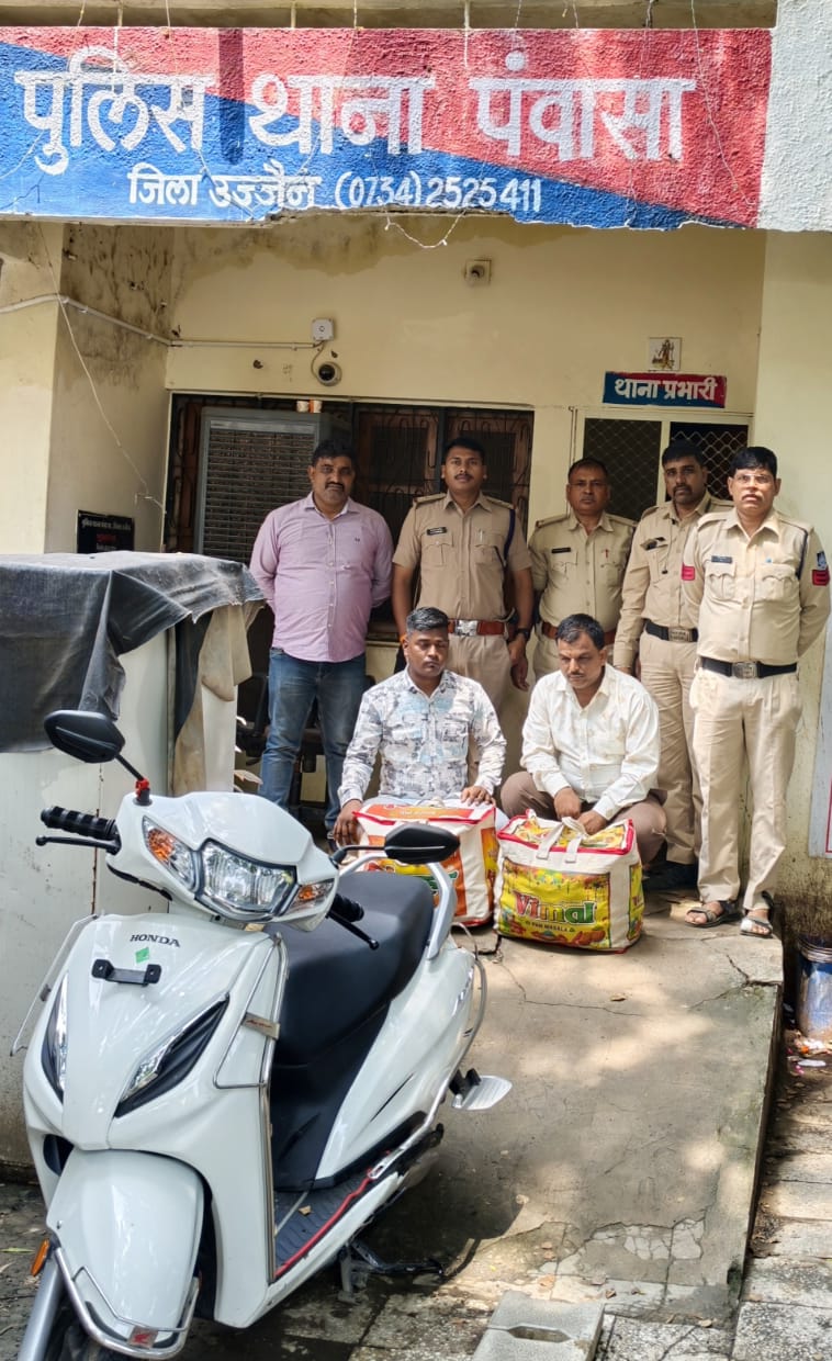 दिनांक 15.09.2025 को थाना पंवासा पुलिस को मुखबिर से सूचना प्राप्त हुई कि करोंदिया रोड, जैवंतपुरखेड़ा मोड़ के आगे, एक सफेद रंग की एक्टिवा (बिना नम्बर) पर दो व्यक्ति अवैध शराब लेकर उज्जैन की ओर आ रहे हैं। सूचना को गंभीरता से लेते हुए थाना पंवासा में पदस्थ सहायक उप निरीक्षक सीताराम भुरिया हमराह आरक्षक 1876 यशवंत मीणा, शासकीय वाहन व पंचगणों को साथ लेकर बताए स्थान पर पहुंचे तथा रोड किनारे छुपकर एक्टिवा का इंतजार किया। कुछ समय पश्चात मुखबिर द्वारा बताई गई सफेद रंग की एक्टिवा बिना नम्बर आती दिखाई दी जिसे पुलिस टीम ने घेराबंदी कर रोक लिया।