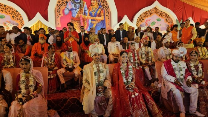 सामूहिक विवाह आयोजन में मुख्यमंत्री डॉ. यादव सहपरिवार उपस्थित थें। मुख्यमंत्री ने समारोह के पूर्व वर-निकासी में सम्मिलित होकर वर-वधु के परिवारों को अपनी ओर से बधाई दी। सामूहिक विवाह आयोजन ‘ऐरी सखी मंगल गाओं री’ जैसे मधुर गीतों की गुंज के साथ उल्लासमय था। योगगुरु बाबा रामदेव के पवित्र वैदिक मंत्रोंच्चार के साथ वर-वधुओं द्वारा एक दुसरे को वर माला पहनाकर जीवन भर साथ निभाने का संकल्प लिया गया। वर-वधुओं के परिजनों के साथ ही उपस्थित समस्त गणमान्यजन भी हर्षित थे।